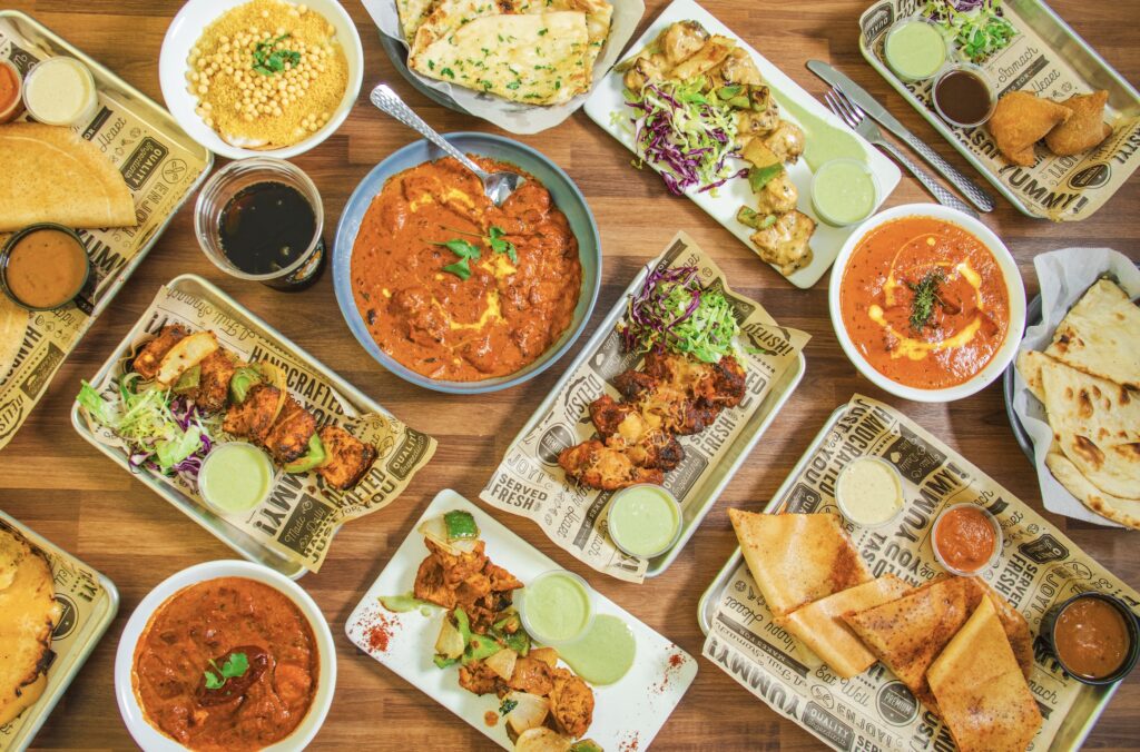 Bold & flavorful cuisine. It’s cooked in a a wok-like pan with tomatoes, ginger, garlic & aromatic spices